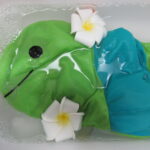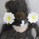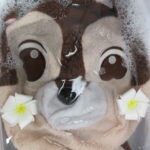 かわいい患者様(ぬいぐるみ様)のお風呂(クリーニング)治療。