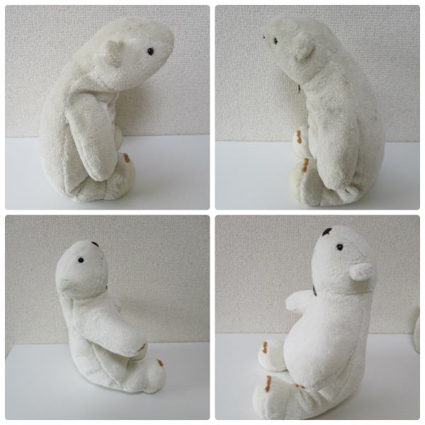 お体が汚れてしまった場合には、おしゃれ着洗い洗剤を薄めたお水にタオルをしみこませてよく絞ってから優しくトントンしながら拭いてあげてください。