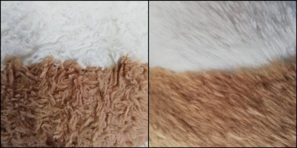 毛をほぐして添付のようなBefore(左)/After(右)のイメージとなります。